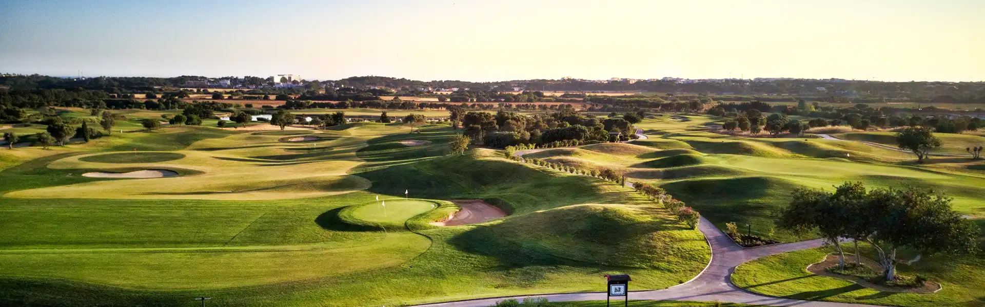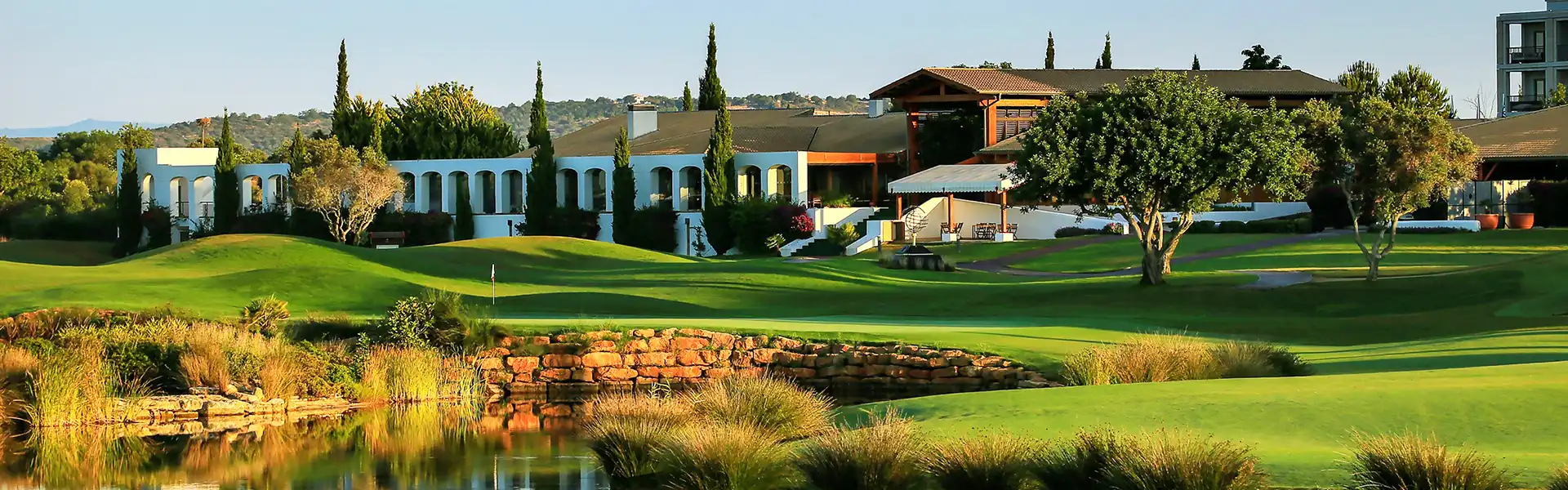 The Dom Pedro Victoria , which covers some 90 hectares, is the most recent golf course project of Arnold Palmer in Portugal. As one of the best and most sophisticated golf courses in Europe, every care has been taken to ensure the preservation of the wetlands and the typical vegetation of carob, olive and almond trees. Several lakes, occupying 13 hectares, provide mirrors of water and strategic reservoirs for irrigation.
