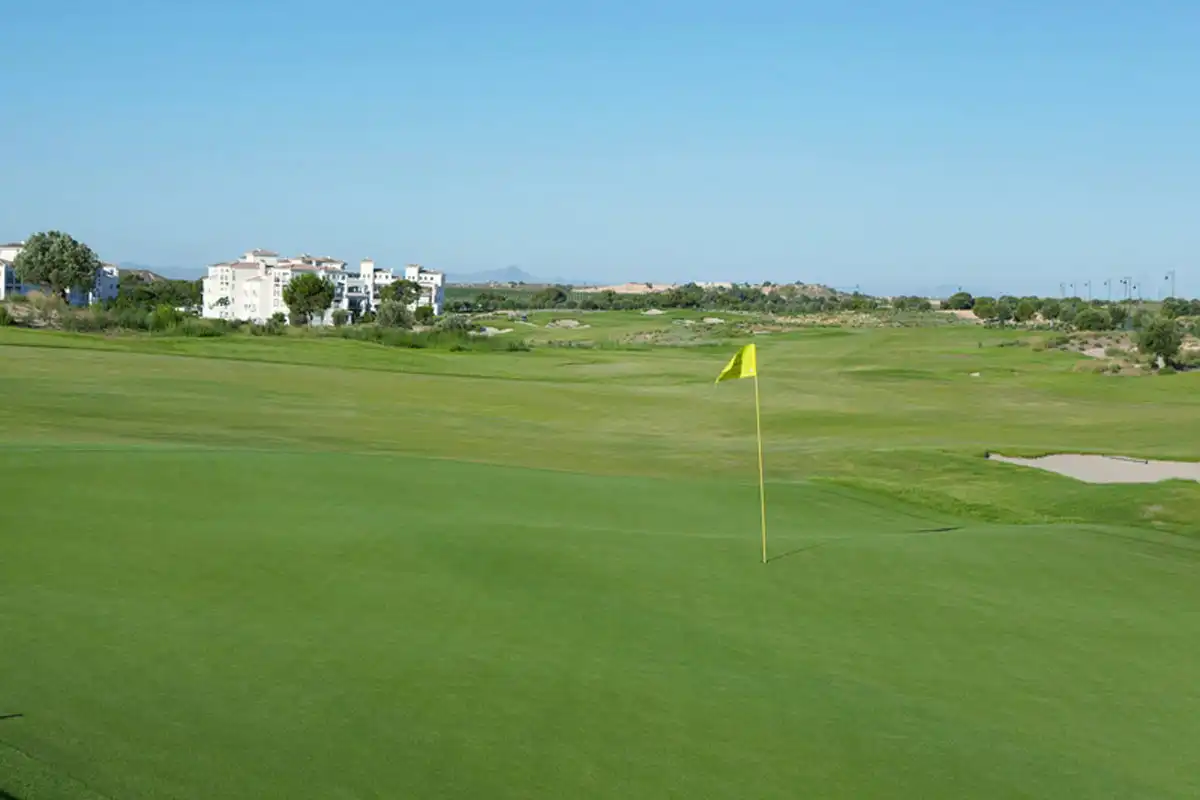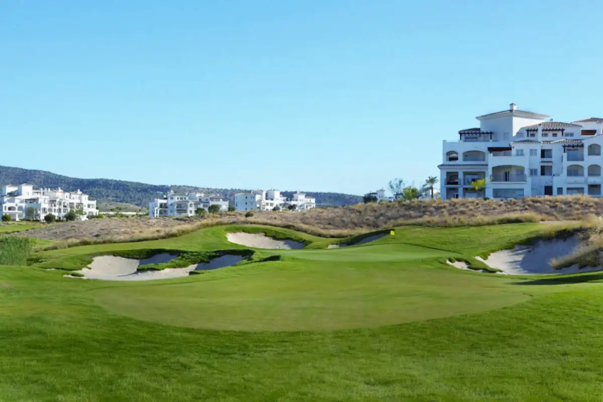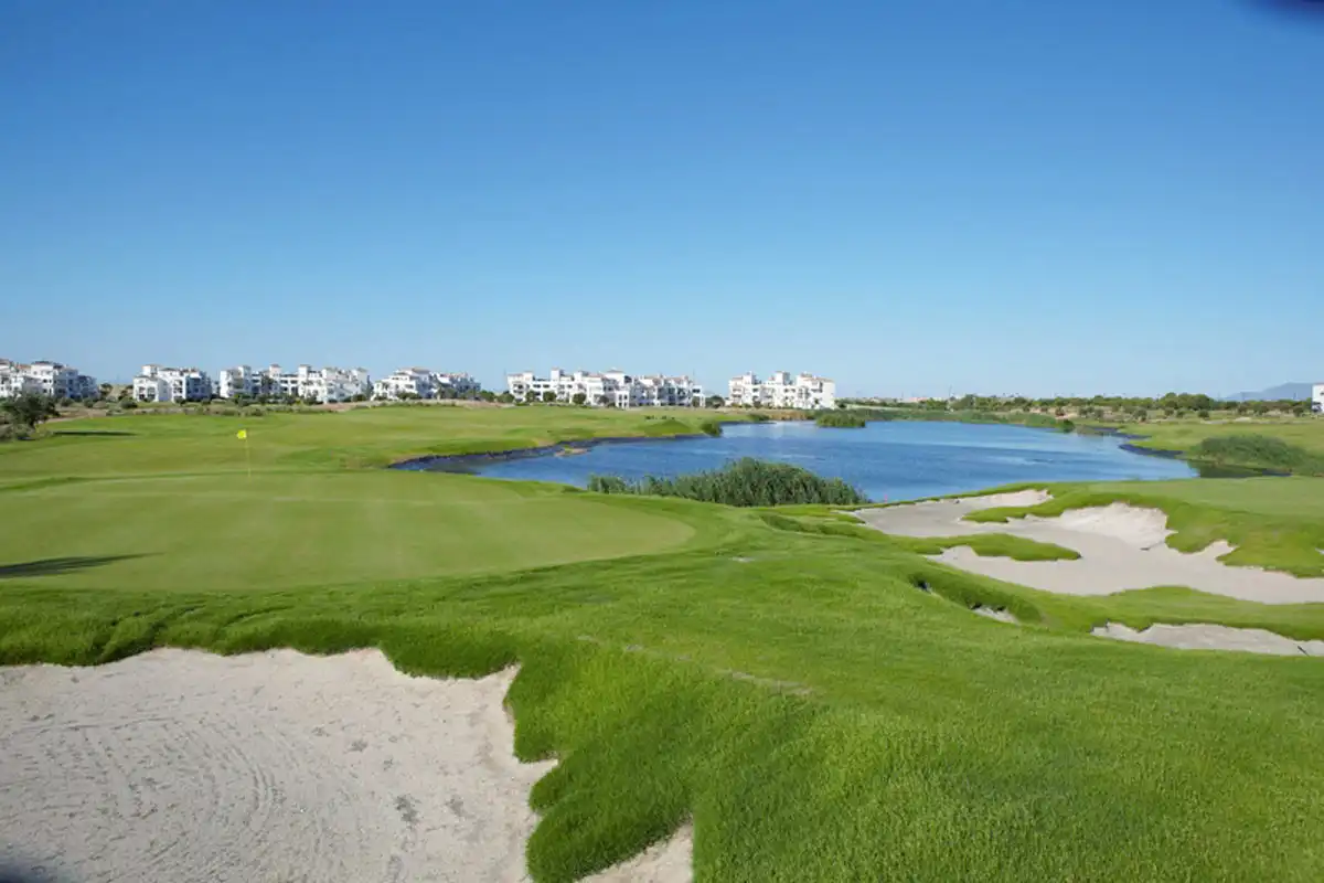 The Hacienda Riquelme Golf golf course weaves is way through and around groves of olive trees, wildflower meadows, and large lakes. Taking advantage of the site's larger scale, the Hacienda Riquelme Golf features wider-than-average fairways allowing players plenty of room to play while creating numerous strategic options. The boldly contoured greens are sure to be the most talked about feature of the course. Many of the greens are broken into several sections by strong elevation changes making it crucial for golfers to play to the correct section of the green in order to set up the easiest putt possible. Additionally, the greens also feature numerous subtle random contours and rolls further complicating putting.